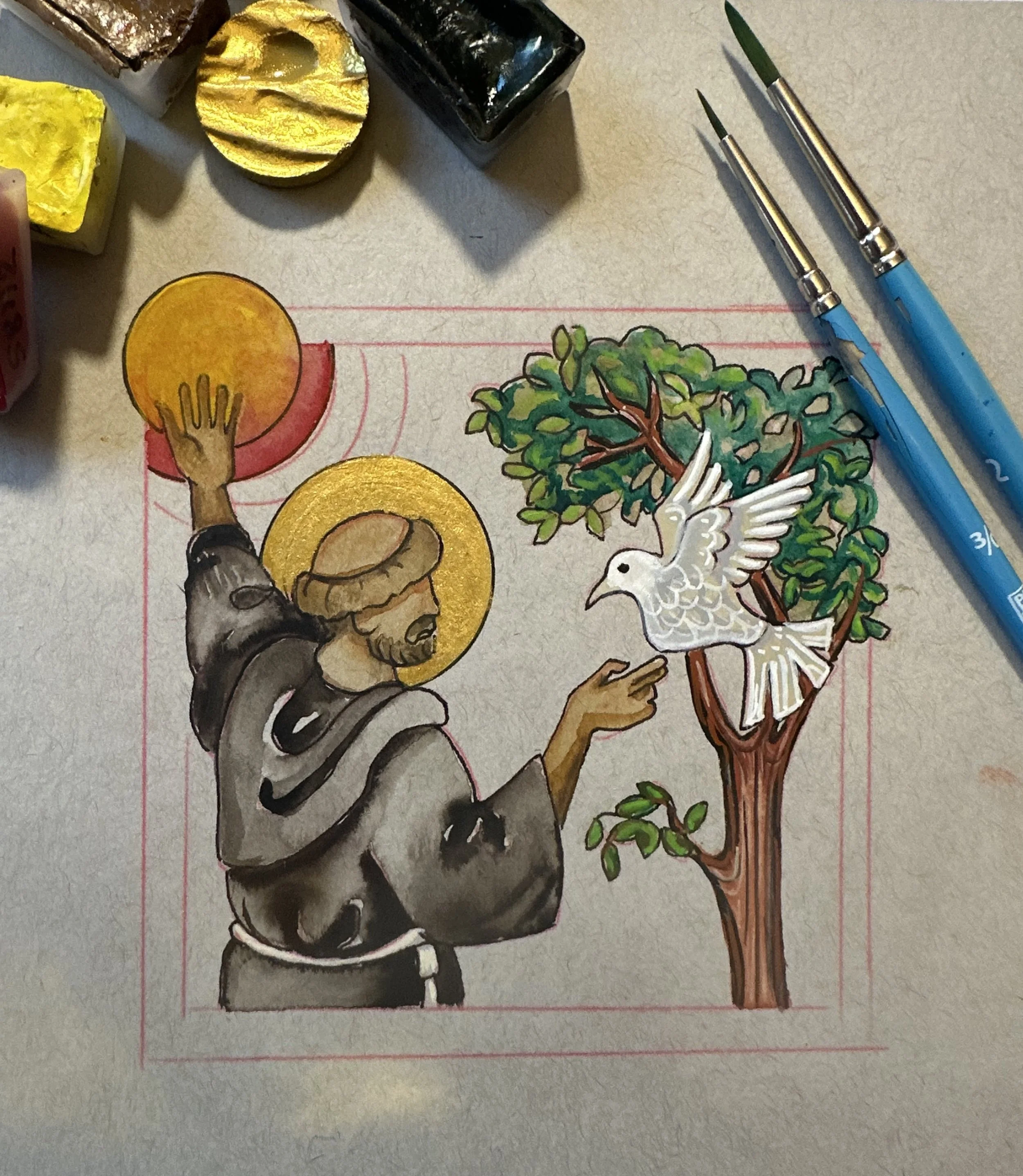 Maria paints with passion in a variety of styles and media, from realistically rendered still-life compositions, to colourful abstracted assemblages, to exquisite traditional icons and illuminations.